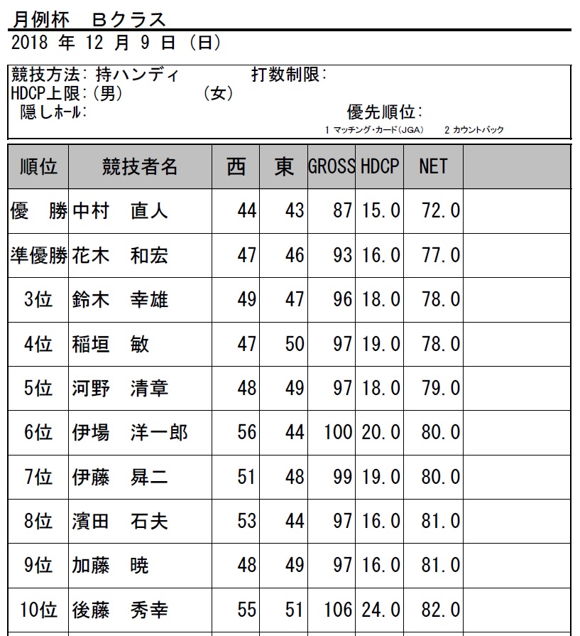 > H30・12月 月例杯Bクラス