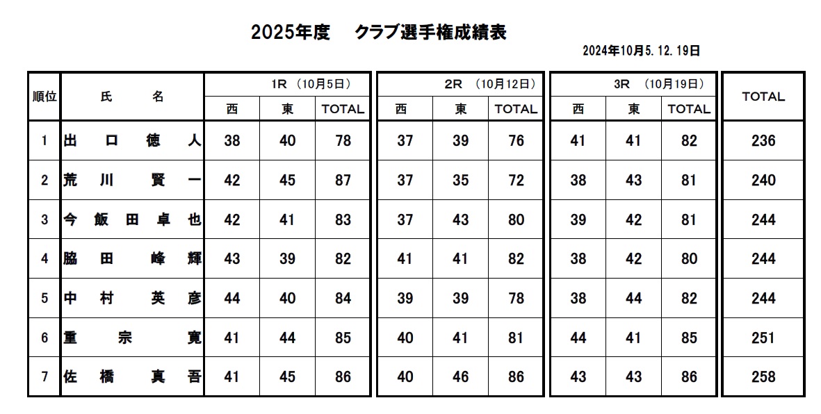 HOME > インフォメーション > 2025年クラブ選手権 決勝 成績表