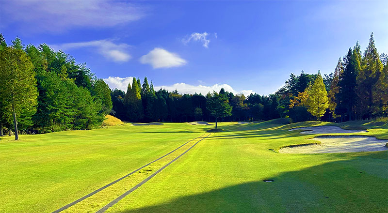 ゆとりある敷地を生かした丘陵コースは、雄大な景観の中にありながら、各ホールごとに表情が異なるレイアウトが特徴です。フェアウェイは広さを感じられる一方で、池やバンカーなどのハザードが随所に効き、一打一打に判断力が求められます。特に池が絡むホールでは、無理をせず刻む選択がスコアにつながる場面も多く、事前に攻略ルートを描く楽しさがあります。