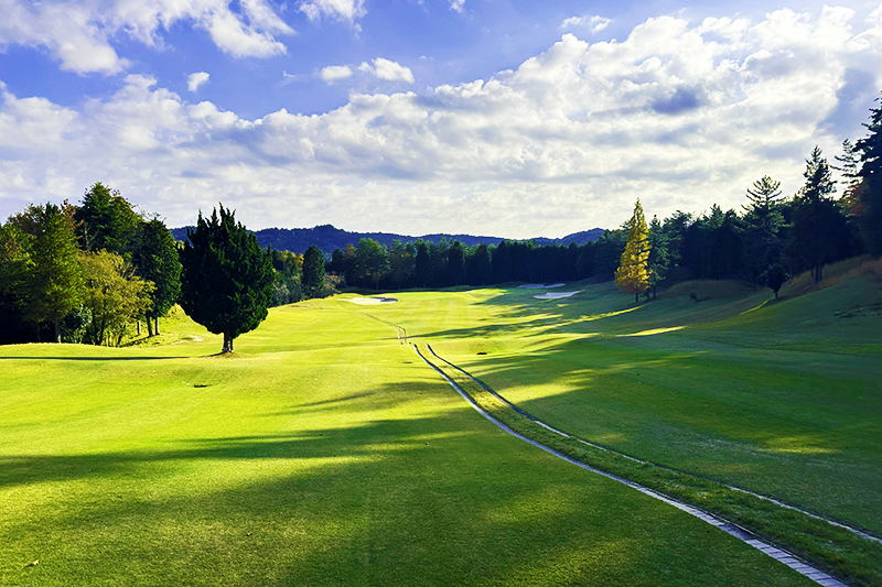 狙い目は、フェアウェイ右サイドの3本のヒノキ。