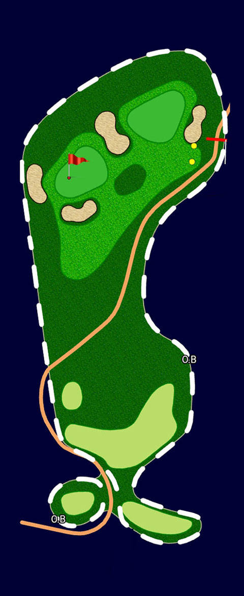 メイングリーンの奥は、すぐOBとなるので注意。Back Regular Front Gold Ladies Main 523 503 498 448 421 sub 469 449 425 400 363 -