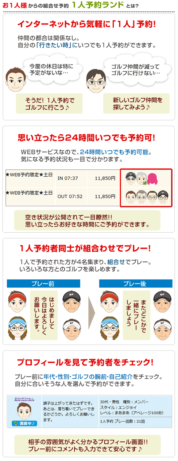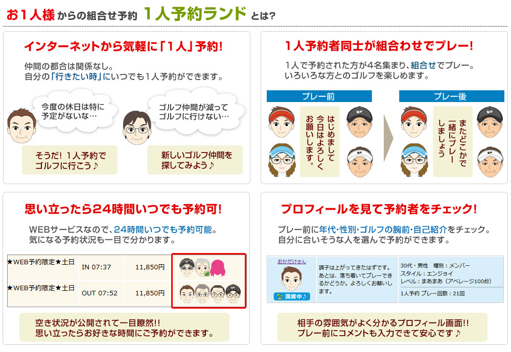 1名様の組み合わせ予約